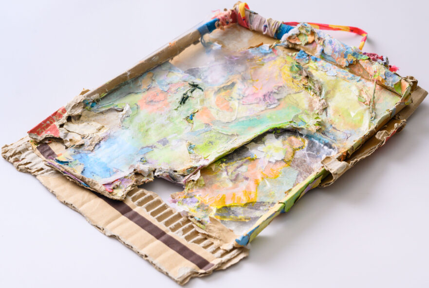 紙、水彩絵具、色鉛筆、糸、ボンド、テープ |