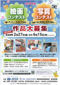 作品大募集 令和8年度「絵画コンテスト 働くすがた~今そして未来~」「写真コンテスト 職場で輝く障害者~今その瞬間~」